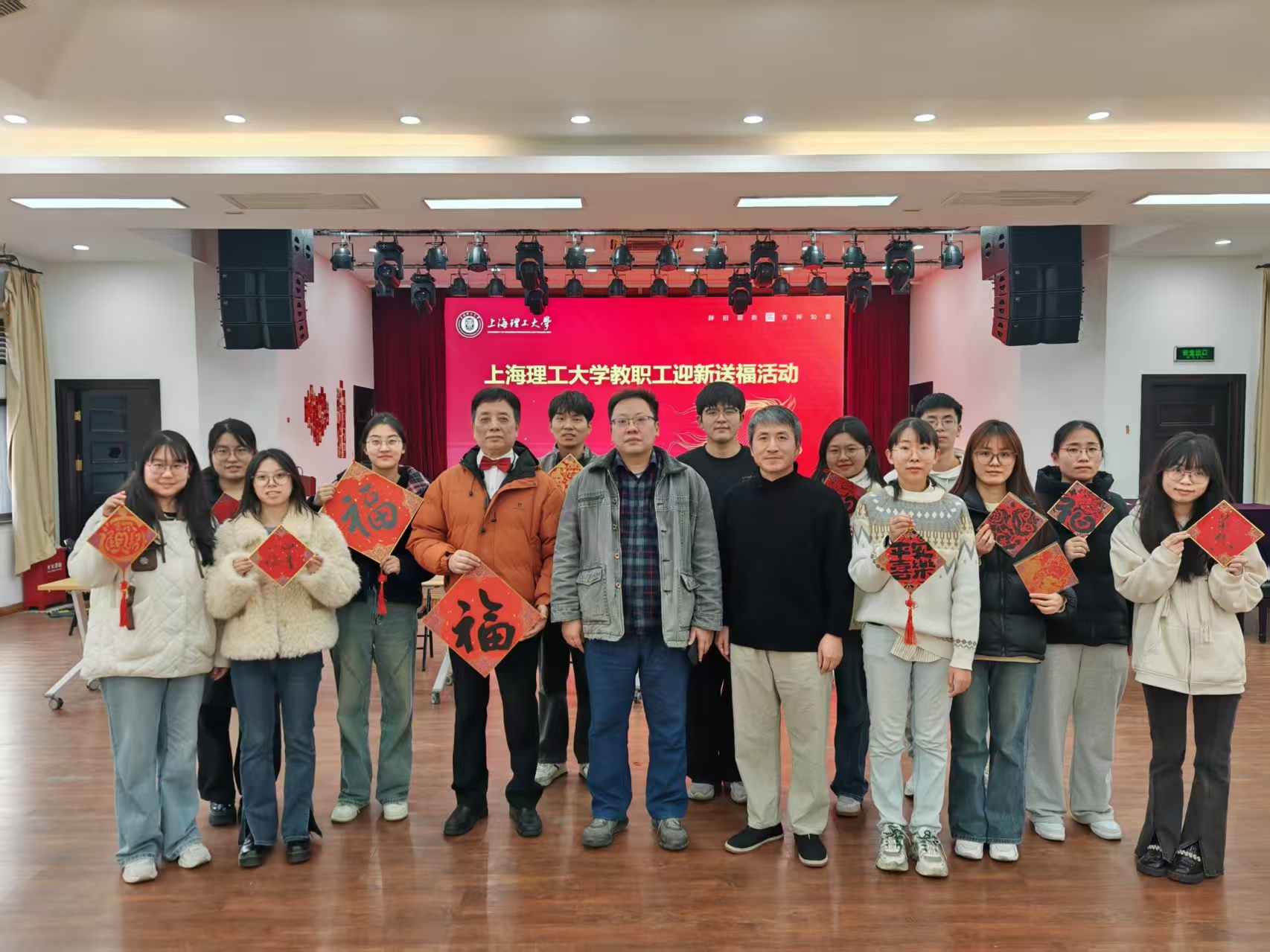 岁聿云暮,新元肇启。为丰富教职工精神文化生活,传承中华优秀传统文化,在2026年马年新春即将到来之际,12月31日中午,校工会联合党委宣传部、党委教师工作部主办,各基层工会协办的教职工迎新送福主题活动在教工之家举行。活动特邀出版学院宫力副教授、沪江学院董剑戟老师,退休教职工书画兴趣小组组长周昭雄、金志奇老师四位书法老师现场助阵,学校100多名教职工踊跃参与,在笔墨书香与非遗韵味中,共纳吉祥福气。