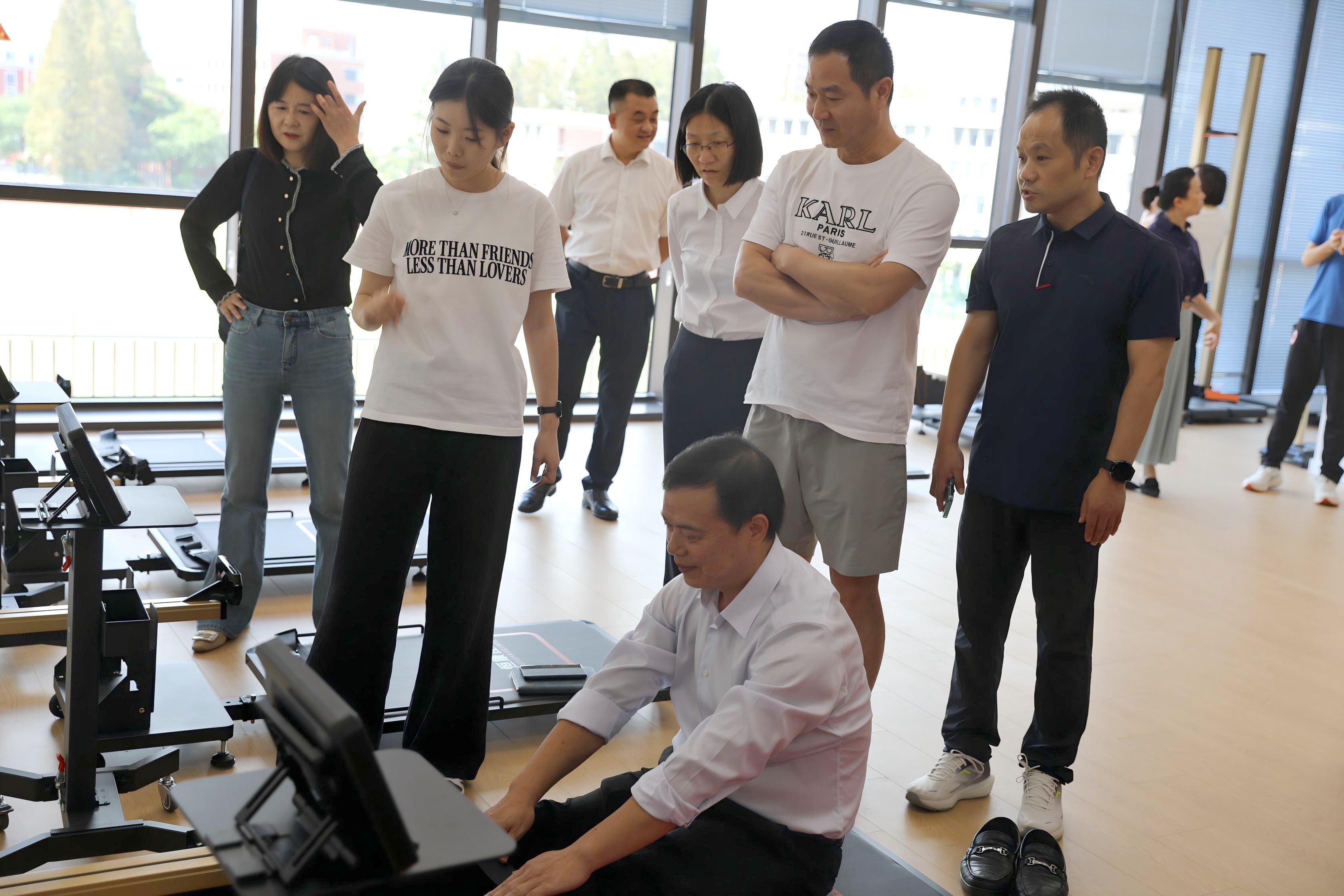 湖南省卫生工会一行首先参观了雷洁琼生平事迹展,学校党委统战部副部长樊小军为湖南省卫生工会一行作生动讲解。大家对雷洁琼先生的生平事迹与教育情怀表达了深深敬意,对上海理工大学人文底蕴与育人理念有了清晰了解。随后,一行前往学校体育部体育健身中心参观,围绕中心的运动场地配置、健康课程设置等内容展开深入探讨。在体育健身中心,负责人董海军老师和马成老师详细介绍了学校在学生体质监测、健康数据评估、个性化运动指导等方面的服务模式、特色课程及配套设施设备,双方就依托专业资源推动师生健康管理的实践成果展开深入交流。