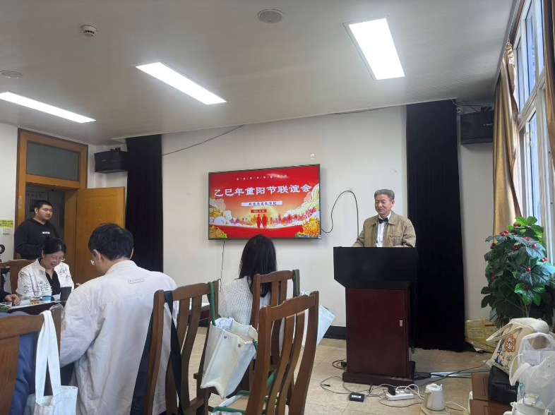 丹桂飘香,情暖重阳。为弘扬中华民族尊老敬老的传统美德,表达对已退休老领导老前辈的关怀与敬意,10月28日中午,环境与建筑学院于环建楼306会议室举办了乙巳年重阳节联谊会。校组织部副部长李景玉、学院党委书记卢萧、党委副书记周蓉、校关工委副主任黄慧、党委工会主席常飞与全体退休教师欢聚一堂,共庆重阳。活动由党委副书记周蓉主持。